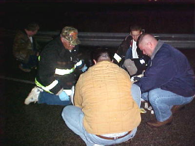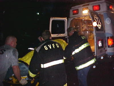 EMS and Grantsville VFD personnel give aid to victim A woman and two children were taken to Minnie Hamilton Health Care Center following a two-vehicle collision at the intersection of Rt. 5 and Yellow Creek Road at Big Bend. None of the victims appeared to be seriously injured, according to a source at the scene. A Ford compact car identified as Avon representative, Debbie Murphy, collided with a Chevy Truck as it was entering Route 5, according to Chief Deputy Sheriff Carl Ballengee. Calhoun EMS dispatched two ambulances to the 6:10 p.m. accident with the Grantsville VFD also responding.