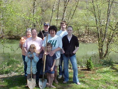 Front - Donna Roberts, Stephanie Roberts The Firedogs 4-H Club planted two trees at the Grantsville City Park last weekend. Mayor Neil Blankenship donated two beautiful dwarf spruce trees to the club. The group picked a site to plant the trees, JJ and Ryan Bremar dug the holes, Ann Frymier, Donna and Stephanie Roberts planted them.