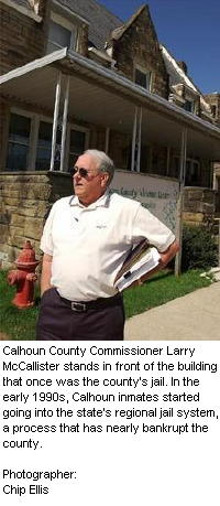 Jail Costs Overwhelm CountiesHigher Daily Rates Hurting Budgets By Charles Shumaker Staff Writer Sunday Gazette Mail GRANTSVILLE â In tiny Calhoun County, Commissioner Larry McCallister (right) knows what the next arrest could mean. If it's a felony, and the person can't post bond, the county could be on the brink of bankruptcy. That is how serious the county's finances have been hurt by regional jail costs. There have been layoffs. Four people have lost their jobs to help deal with the county's money problems, McCallister said. Meanwhile, county leaders have sold property and reassessed the county's property to help increase income. The cost of housing two murder suspects still awaiting a Calhoun County trial has done its part to run up the county's jail bill. "You've got to sacrifice employees to pay room and board for prisoners," McCallister said. "That just doesn't sit well with me." Calhoun is in the same position as many West Virginia counties. Even the state's largest counties are struggling. Although their budget problems may not be solely based on regional jail costs, that has been the most popular target. Cabell County officials, for example, have refused to pay their growing jail debt. Kanawha and Putnam county officials are hoping a day reporting system for nonviolent adult offenders will save them a lot of money. Steve Canterbury, the state Regional Jail Authority director, has heard from all of them. He said he is aware counties are struggling. He was criticized in 2004 when he raised counties' per diem rates by $3.50 to $48.50 to cover rising health-care costs for inmates. "It's just easy to point our way," Canterbury said. "The problem is that counties are seeing increases in all other aspects, like gasoline and employee pay or health care. Those are realities. It costs more now to keep the park up and to run the [police] cruisers. Everything has gotten more expensive, including running jails." While some county administrators say they are better off with regional jails, and the accompanying bills, others loath paying them and fall behind. 'We had to do something' In the early 1990s, Calhoun officials closed their jail and began shipping prisoners to the Central Regional Jail in Flatwoods. McCallister wasn't on the commission then, but looking back, he said he knows that it was something that had to be done. He says that even though his county hasn't been able to pay its jail bill since January. Calhoun owes more than $50,000 and pays a couple of thousand during the months that it can. Once this year, McCallister said, the county held county officials' paychecks a few days to cover outstanding bills. But Calhoun County's jail, like 36 others at the time it joined the regional jail system, was facing federal oversight because of the deteriorating conditions. In Putnam County, jail costs are expected to cost almost $450,000 more this fiscal year than they did during the last fiscal year. By June 30, when the current fiscal year ends, Putnam officials expect to have paid almost $1.15 million in jail costs since July 1, 2004, according to Putnam County Administrator Brian Donat. Putnam County Commissioner Jim Caruthers knew that his county had to enter the regional jail system. In the late 1990s, Putnam leaders actually sought out the regional jail system as a money saver. Lawsuits over jail conditions, inmate medical costs and a severely overcrowded and deteriorating jail were all fast becoming budget busters, he said. "We asked to get into the system early because we were at a crossroad," he recalled of the decision to send Putnam inmates to the South Central Regional Jail in Charleston. "We really needed to do something. It was either get in or pay millions for a new jail." Now, Putnam County sends inmates to the Western Regional Jail in Barboursville. The jail opened in December 2003 for Cabell, Putnam, Mason, Lincoln and Wayne counties. Caruthers doesn't blame the system. Neither does McCallister. They both say they realize their counties have seen more criminals. Putnam County is among the fastest growing areas in the state. Crime, arrests and jail time have followed. "Our prisoner growth has been what has killed us," Caruthers said. "We're just locking up so many more people now. And probably not for the wrong reasons." 'The Legislature is the hero' When regional jails were first being built, Billy Burke, a former executive director of the authority, said he struggled with county commissioners over their bills. "Some of them had the attitude that they didn't have to pay," Burke said. "I told one county commissioner that if they didn't pay, I couldn't accept their prisoners. I had to be a little hard-jawed with a few of them because they really tried my mettle." He said county officials, like sheriffs, felt they were losing responsibilities when they lost their jail. Per diem rates started around $50 per inmate because there was only one regional jail, the Eastern Regional Jail located in Martinsburg. As more jails opened in the past 15 years, the per diem rate went down because of more prisoners and counties paying into the regional jail system. The Legislature created the regional jail system in the mid-1980s to replace every county jail. In June, Tygart Valley Regional Jail â the last of the 10 facilities planned in the original system â should open six months ahead of schedule. That doesn't only reel in the last of the county jail inmates, but it also triggers an aid to counties for paying their jails bills. Under that law, civil lawsuit filings will cost $20 more to file as of July 1. And criminal fines on crimes ranging from speeding to murder will rise $30. That means a $110 speeding ticket will cost $140, according to Canterbury. Counties can benefit from those increases because the difference in filing fees and costs will go to a regional jail reimbursement fund in the state Treasurer's Office. After the fiscal year expires July 1, 2006, the Treasurer's Offi