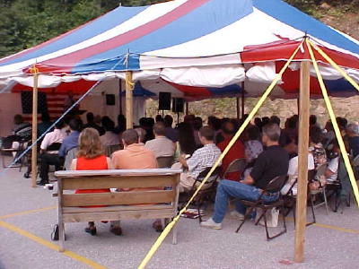 Victory Baptist Church launched its 5th Annual Tent meeting last night. The tent is located on the grounds of Victory Baptist Church, just south of Grantsville. Last night the old-fashioned revival was led by Dr. Myron Guiler. The 7:00 p.m. services will include: Tuesday - Alfred Hickman, with special music by the Hickman's Wednesday - John Watkins, with special music by the Victory Singers Thursday - C.W. "Mac" McDonald with special music by Tommy Nutter Friday - Mike Worf, with special music by the Marietta Ambassadors For information or directions, phone 354-7780 or email talk2shari@lycos.com