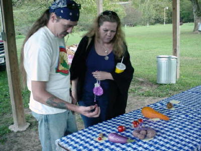 ![]() Frank Tobia and Diana Stinnet of Chloe had a difficult job, judging the ugliest veggies