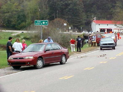 Three cars were involved in an accident at the junction of Altizer Road and US 33-119 at Arnoldsburg at 1:30 p.m. today. One person was taken to Roane General Hospital by Calhoun EMS. The Arnoldsburg VFD responded to the scene. |