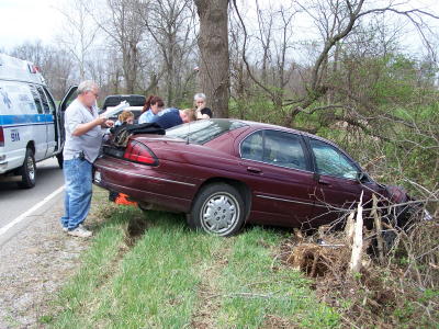 ![]() This car crashed against a tree on the Annamoriah Straight early afternoon yesterday, with the driver receiving only minor injuries, not requiring hospital treatment. Calhoun EMS and the Grantsville Volunteer Fire Department responded.