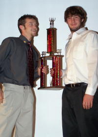 ![]() The 2007 Most Valuable Players (left to right) Samantha Wilson (Cheerleading); Eddie Burrows (Wayne Underwood Award); Cody Clark (Wrestling); Dani Church (Lady Red Devil Award, Basketball, Softball); Courtney McKown (Volleyball); Jeff Goodrich (Football, Baseball); not pictured Zach Moore (Boy's Basketball) and David Lee (Cross Country) About 100 Calhoun High School athletes were recognized Friday night at the All-Sports Banquet at CM-HS. The athletes, with parents, coaches and supporters enjoyed a banquet dinner prior to the awards ceremony. Athletic Booster president Kelley Houchin recognized the dozens of volunteers who have donated energy to support the school's athletic programs.