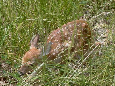 This young fawn was hiding in the grass on Broomstick Ridge, caught by the camera (Photo by Esther Wilson)