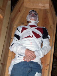 A Haunted Trail of chilling scares greets visitors to County Park Ghosts, goblins and ghouls greeted visitors to the Haunted Trail last night at Calhoun Park. There were lots of special effects, from flying ghosts to a chainsaw massacre. The event is being sponsored by Calhoun EMS. Visitors go to the first shelter, a right turn, up the hill to commence the walk, which includes a guided tour with a storyteller. The trail is open tonight from 7 to midnight. Admission is $2 for adults and $1 for kids under 12. Concessions will be sold, hots dogs $1, hot chocolate and coffee 50 cents.