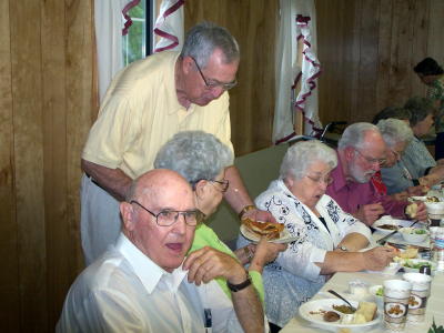 Former Calhoun resident and CHS coach Cecil Johnson serves a little pie 2008 The Calhoun County High School Class of 1948 held their 60th reunion Friday evening at Pleasant Hill United Methodist Church, with some of the members attending the all-class reunion Saturday.