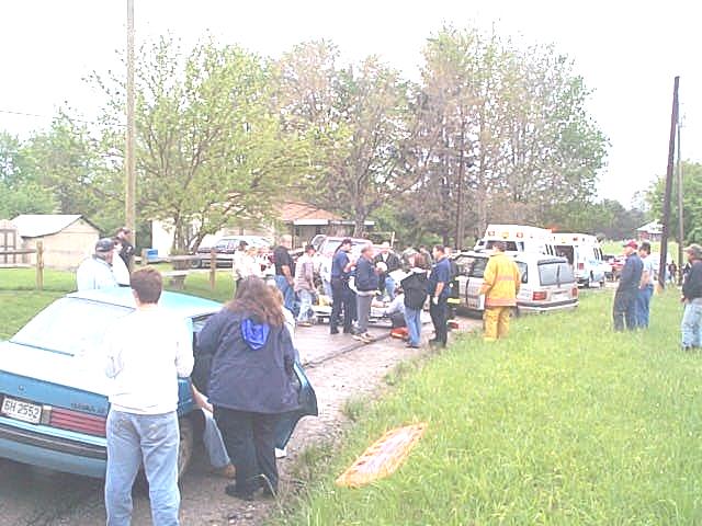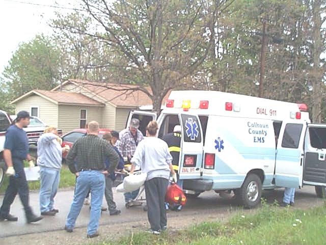 ![]() Firemen and EMS workers assist the injured Sources at the scene said the road appeared to be very slippery after lightly falling rain. A few minutes before the Nobe accident, emergency services responded to a wreck in the sharp curve at Cabot Station, Route 5 west of Grantsville. Two vehicles struck. Parties from both cars were taken to Minnie Hamilton Health Care Center by Calhoun EMS.