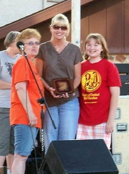 Judy Powell (L) Wood Festival Committee President The 1st Annual Charlie Whipkey Spirit Award was presented to Angie, Joe and Ashley Hersman for their dedication to the Calhoun County Wood Festival for countless hours of hard work over the past ten years to the festival and the community.