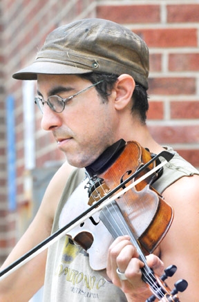 Square dance caller, Michael Ismerio, traveled from It was Michael Ismerio's first Folk Festival, traveling from his hometown of Bloomington, Indiana, a place he proudly referred to as a "lefty bubble." What drew him to the Folk Festival were stories he'd heard about the "great square dancing" here. Ismerio is a fiddle player and professional square dance caller who is often on the road more than at home. "I just called square dances in Bejing." More typically, Ismerio's calling turf is confined to throughout the U.S., Canada and Mexico. The West Virginia State Folk Festival is held annually, Thursday through Saturday, of the third week in June.