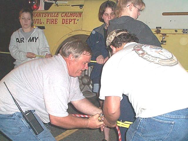 ![]() Fire Chief Dave Johnson helps assemble rescue device