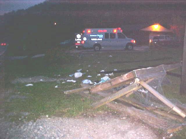 Auto came to rest along Route 16 A late model car driven by April Roberts, 19, went out of control Tuesday evening on State Route 16 at Chloe, causing the Grantsville woman to be taken to Roane General Hospital for evaluation. The Robert's vehicle went through a trash bin and fence traveling across the Allen family yard, before coming to a rest. Calhoun EMS and the Upper West Fork VFD responded at 8 p.m., near the entrance to the fire department's station. Sheriff Allen Parsons also responded to the scene.