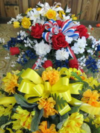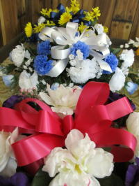 A large variety of tributes are on sale until Memorial Day, wreaths, saddles, angels, vases, baskets, hanging baskets and crosses. Request early for special orders.