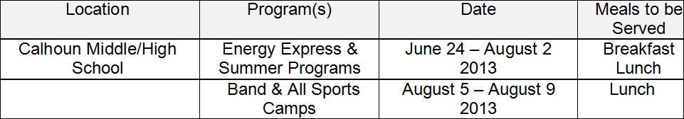UPDATE: CALHOUN SCHOOLS ANNOUNCE CHANGES - Summer Day Programs, Food Service |