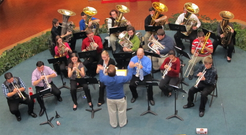 GSC Brass Ensemble at the Charleston Town GLENVILLE, WV - The Glenville State College Brass Ensemble will be delighting shoppers at the Charleston Town Center Mall on Saturday, December 21st with a selection of holiday music. "Thanks to wonderful performances in previous years, the ensemble's appearance at the Town Center is becoming a yearly tradition for holiday shoppers," said GSC Assistant Professor of Music Teresa Dody. The ensemble is under the direction of GSC Assistant Professor of Music and Department Chair Lloyd Bone and consists of seventeen students. Joining them this year will be the GSC Saxophone Quartet. They will be performing from 11:00 a.m. until 6:00 p.m. in the mall's Macy's Court. "This is really great exposure for GSC. We have been given a premier time slot, and we will have the opportunity to play for thousands of people as they go about their holiday shopping," said Bone. "We are even beginning to develop a following," he added. For more information about the GSC Brass Ensemble or the GSC Music Degree Program, contact Bone at Lloyd.Bone@glenville.edu or (304)462-6340.