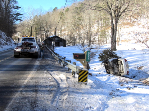 ![]() A woman driver lost control of her vehicle Thursday morning at 10 a.m. apparently after going onto the ice and snow covered berm and then crashing into a creek bed. The driver was not injured. The accident happened on US 33-119 just west of Liberty Hill near Arnoldsburg. MHHS-EMS and the Arnoldsburg VFD responded. The Calhoun Sheriff's Department investigated. |