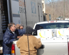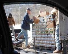 Submitted by Ruth Beall Lions Clubs around the world offer their services as "Steward's of Communities" helping and offering assistance in ways that are way too numerous to mention. On this day in particular, February 26, members of The Grantsville Lions Club were "lending a hand" to the local food pantry, which is managed by Grantsville's First Baptist Church. They helped to transport 6,000 pounds of food from an incoming semi, transferring it to pick-up trucks and on to the distribution point.