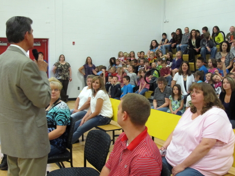 A NEW 'OLD GLORY' FLIES OVER ARNOLDSBURG SCHOOL - Senator Manchin Challenges Students, Answers Questions |