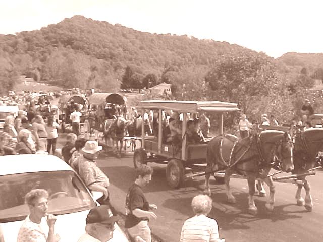 The 35th Molasses Festival is history and co-chairperson Linda McCartney said "We had a wonderful group of people helping this year, trying to replace some of the old-timers like Pete Bush who passed away, and Deward Offutt who has been under the weather." There is a long list of Arnoldsburg area old-timers who stuck with the festival and made it a success. "The molasses making went really well. There was a great crew doing the job and nearly all of the jars have been sold," said McCartney. This year's King and Queen will join the list of young people for the past 35 years. Third grader Jacob Jett, son of Ron and Tammy Jett of Orma, was crowned King. Ashley Houchin, a fourth grader, was crowned Queen. She is the daughter of Jeff and Kelley Houchin of Arnoldsburg. This year's festival was described as one of the biggest and best, according to McCartney. The Hur Herald camera had a malfunction in the middle of the parade, missing several pictures. Some of the pictures turned out in old-time sienna...probably user malfunction. We are still sharing some of them with you in this Molasses Festival Scrapbook.