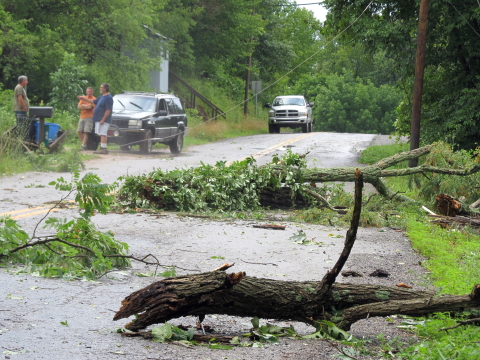 Trees down power lines at Mt. Zion, Barnes Run Road