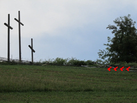 ![]() Tall radio tower downed by high winds at Mt. Zion, falling between three crosses erected years ago