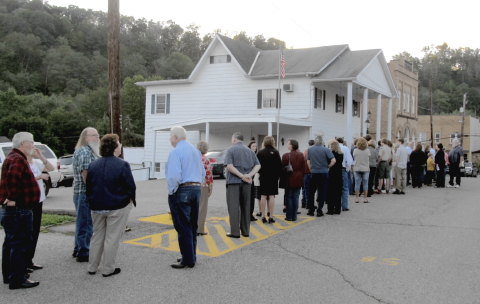 A long line of neighbors and friends lined the street Sunday evening at Stump Funeral Home to pay respects to their neighbor and friend, Doyle Hupp