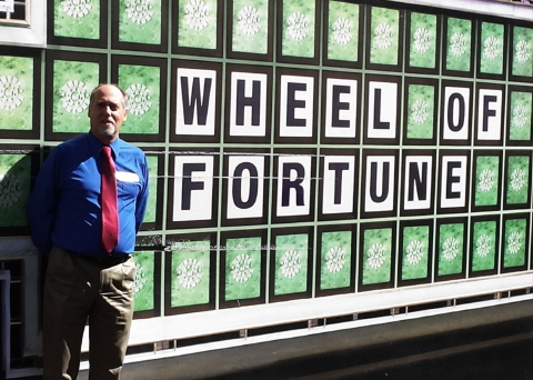 Scot Epling poses next to a billboard at the entrance Photos by Kelli Ingram, also a Spencer native Spencer native, Scot Epling, is set to appear as a contestant on Wheel of Fortune this Thursday, September 25th. A 1980 graduate of the former Spencer High School, Epling flew to Los Angeles on July 21st for the taping of the episode set to air in just a few days. Says Epling, "The whole experience was amazing. It really was the experience of a lifetime." "The highlight of the trip was probably the morning of the taping when Vanna White appeared on the set in her street clothes with no makeup and her breakfast in hand. She sat with us, chatting and laughing before disappearing to get ready for the show."