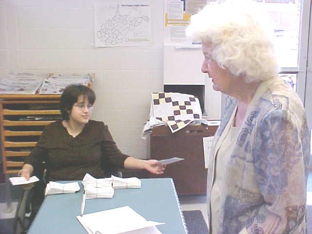 WV Library Commission representatives Karen Goff, Karen Hiser (front) Delegate Bill Stemple, Board President Grace Richards (rear) "A place where the lofty spirits of all nations and generations meet." - Samuel Nige By Bob Weaver Yesterday was open house at the Calhoun's only public library, celebrating a history of 35 years at the current location. "A wonderful library it is," said library board member Tom Gainer, a former Calhoun Commissioner, who was the honored person at the celebration. Gainer, who has been suffering health problems, has been a dedicated friend of the library, not only as a board member, but has also contributed time and labor to many different projects over the years. President of the Library Board Grace Richards said "Tom Gainer has been a great asset to this library and this community." Gainer praised Delegate Bill Stemple for obtaining $60,000 for the library from the Budget Digest and other sources over the past six years. He spoke generously about the "dedicated efforts" of the staff and community toward improving the facility and keeping the doors open.