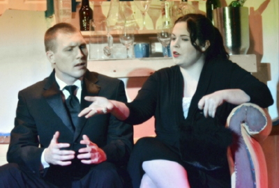 Glenn (Tyler Hammack), left, and his wife, Director, Dennis Wemm, said the play was a process of discovery for everyone. One persistent underlying question in the script, Wemm said, is "When is it OK to tell a white lie to get you past the next crisis in your life -- and when shouldn't you do that." "Rumors" opened at GSC's administration building auditorium Monday evening. Two additional performances will be held Friday and Saturday night. Curtain time is 7 p.m. Due to mature content and language it is recommended no one under 16 attend the production. Admission is $3 for students, $5 for everyone else.