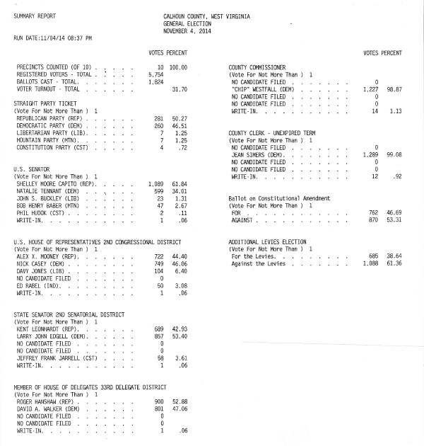 CALHOUN NOV. 4 GENERAL ELECTION RESULTS