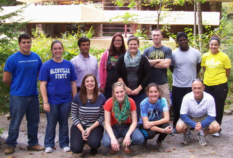 ![]() Students in GSC's Honors Program at Fallingwater. (Back L-R) Tyler Cooper, Morgan Allen, Dr. Jonathan Minton, Charissa Friend, Katie Stover, Tyler Hammack, Allante Watts, Brianna Caison; Front L-R) Larisa Gordon, Sarah Gillespie, Emily Walker, Dr. Art Dematteo