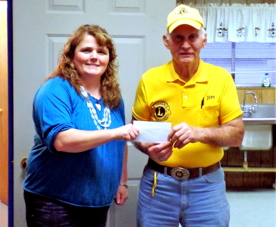 At a recent meeting, Lions Club President, Jim, McCormick, presented County Librarian, Amy Norman, with a $300 check to assist with the library's flood insurance