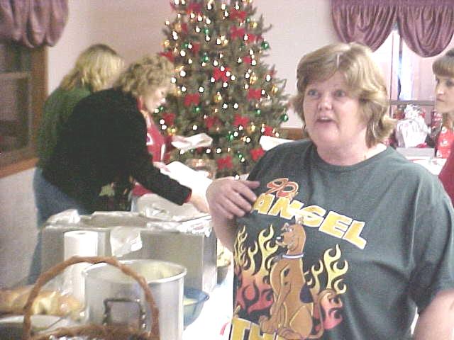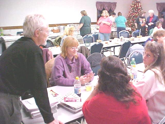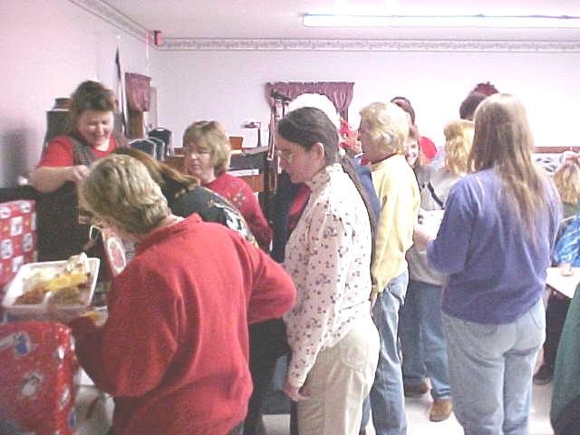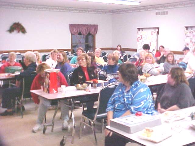 "Welcome to the food line" The annual CCCOA Christmas party for employees was held last night at the Senior Center in Grantsville. "We are grateful to our hard-working employees," said center director Mike Ritchie, who said "I'm going to play Santa Claus tonight," handing out some bonus checks. Brenda McBride helped with the gift exchange, which followed a covered dish dinner. Ritchie said the past year at the center was filled with senior services, lots of special events and some exciting times. "Most of all it is the seniors who make it worthwhile," he said. "Our workers have given a lot, and we appreciate them," he concluded. ![]() Large number of employees attend recognition dinner