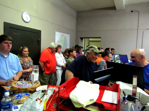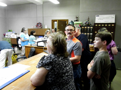 Candidates and their families crowded in the Calhoun County Clerks office Tuesday evening to hear the first returns of Tuesday's Election