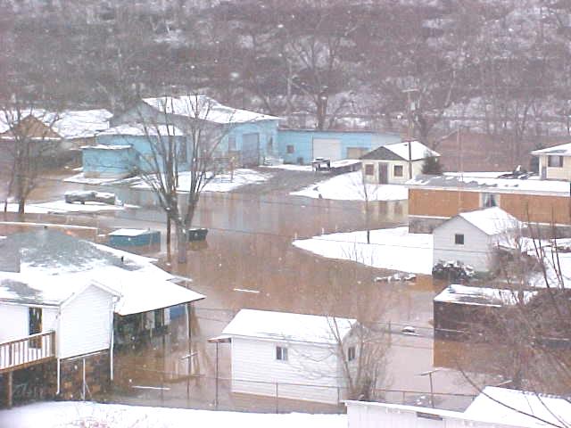 By Bob Weaver Rainfall stopped in the nick of time early Sunday morning, preventing major flooding in the region. The Little Kanawha River went out of banks along Route 5 from Glenville to Grantsville and downstream before noon, and then began to recede. Grantsville resident Roger Jarvis, whose house was at risk for flooding, said the river was coming up 3-4 inches an hour at 3 a.m. More severe flooding was experienced in Glenville. (See Glenville and Wirt flood photos on The Herald) The Grantsville Volunteer Fire Department continued their around the clock work in assisting a few individuals and families to evacuate their homes. The Senior Center in Grantsville was opened for those displaced by the water. Yesterday's flooding could be a climax to two weeks of severe weather that struck the region. Calhoun and Roane County have been among the hardest hit, according to the National Weather Service. However, more snow is predicted today.