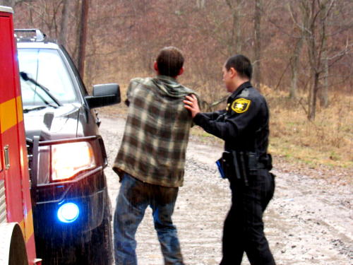 3/3/2020 - Responders went to a vehicle crash on Rowels Run Road about 3:30 p.m. Monday, the vehicle landing on its side and blocking the roadway, the driver extracting himself without apparent injuries. The driver appeared to be under the influence, left the scene walking up the highway, waving his arms, dancing and yelling incoherent statements, sometimes laying down in the roadway. The Grantsville VFD and Calhoun EMS responded to the scene. Calhoun Sheriff Jeff Starcher and Chief Deputy Jason Chang took the man into custody about a quarter mile from the accident. He was being medically evaluated, although he had no apparent injuries. |