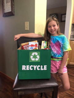 Camry Parsons, doing her part to recycle (L) and