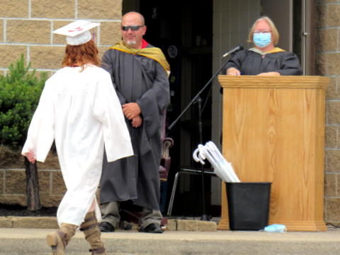 Eighty-five, the 96th graduating class of Calhoun High School came forward to get their diplomas Friday. The graduation was conducted with lots of rules and guidelines related to the world-wide pandemic of the Coronavirus, with the nation's schools closed since March and as the virus is rebounding across America.