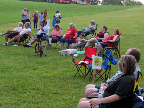 Folks come out to the grassy fields of Calhoun Park to enjoy entertainment provided by John Richards from the new stage erected near the main building, just before the fireworks