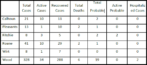 | Parkersburg, WV September 17, 2020 â The Mid-Ohio Valley Health Department (MOVHD) regrets to announce a resident of Roane County has passed away from COVID-19 related illness. Our heartfelt sympathy goes out to the family. In the MOVHD region, Wood County has lost six residents, Pleasants County has lost two and this is the second in Roane County.