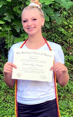 Calhoun County's Jaiden Francis was inducted into the Society of Torch & Laurel on June 27th.As an upcoming sophomore she is proud to be a part of this society that honors, and elevates high achievers to help and mentor those who strive to be the best they can be. The Society of Torch & Laurel is a society that represents, integrity, respect, and leadership. With Their Laurel serving as a reminder to their members that they are part of a long and noble tradition of distinguished scholars, and with their torch representing the ability for each member to serve as a guiding light to others. Jaiden is proud to be a part of the Society of Torch & Laurel as well as to represent The Calhoun County Marching Band as a feature twirler as she continues to strive for only the best, and lead others on their journey to success.