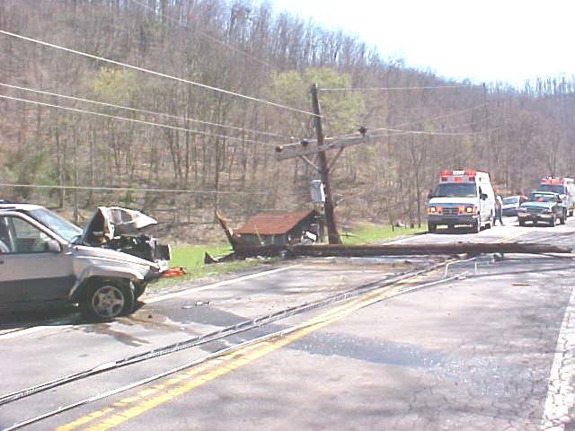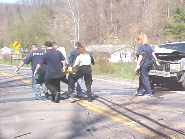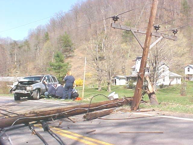 ![]() EMS treats accident victim with power lines hanging
