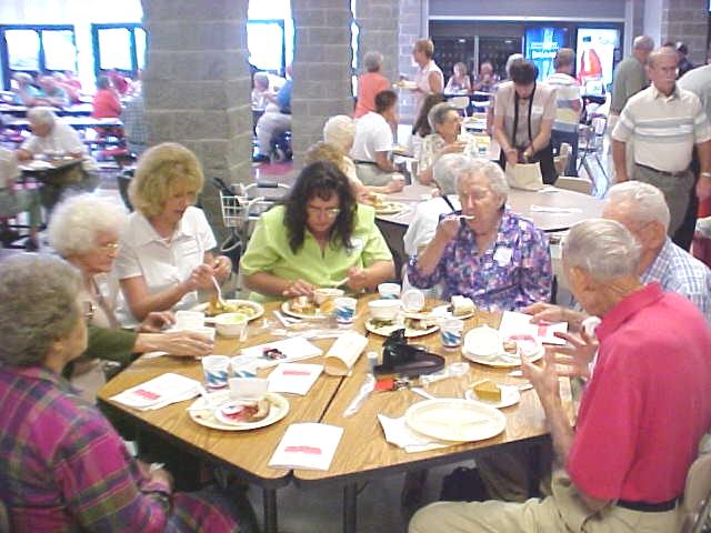 ![]() Most graduates attending Alumni Day are connected to old CCHS (See "Ghosts of Calhoun High" 6/29/2003) By Bob Weaver "After 60 years, I finally made it to the head of the class," said Denver Roberts Class of 1943. Roberts was one of four alumni speakers at the 16th Alumni Day held Saturday at Calhoun Middle/High School. "You could spot the teachers. They dressed better than the janitors," said Roberts, who kept the alumni laughing for twenty minutes.