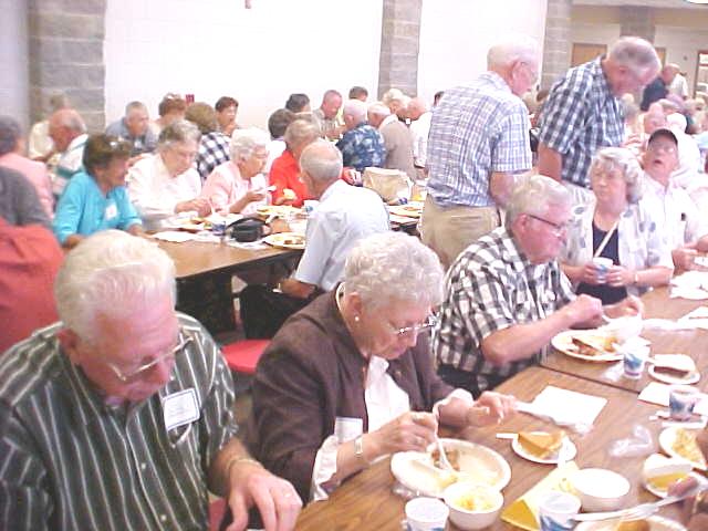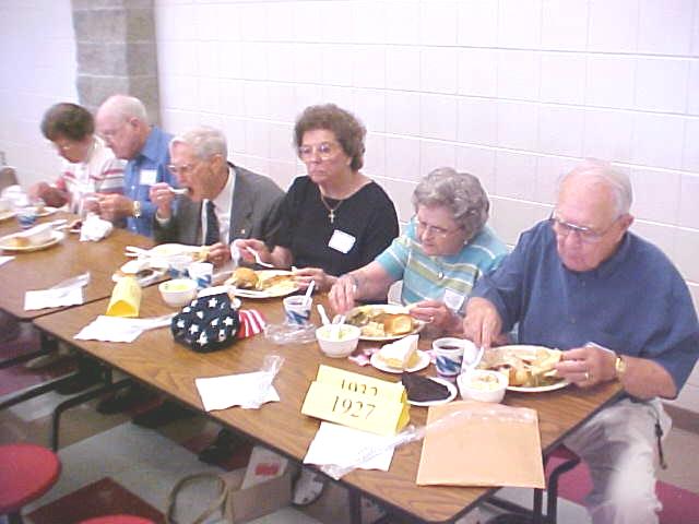 Roy John Virden Alumni President Ila Grey Snider said over 400 people attended the event, not including many people who stopped by. Master of Ceremonies William Ice introduced Principal Mike Offutt and representatives of other special classes which received recognition . 50th CHS class (1953) representative Bob Berdine recalled his long-time friend Boone Waldo, now deceased. He remembered the booming voice of principal Proudfoot "echoing up and down the hall" and principal Roy Walter's "shaming finger that put you in your place." Berdine said most of his class hit Route 21 to Akron. 40th CHS class (1963) member David Campbell said "It is amazing after all these years there is a stoplight at the school," referring to a temporary construction light erected at the entrance. He spoke fondly of school memories and class members. 25th CHS class (1978) Navy-man Roy John Virden talked about his life at CHS, recalling his late father Joe Virden, former teacher, and Mayor of Grantsville. He paid tribute to the hundreds of Calhoun men and women who have served America's military, past and present. The alumni scholarship was given to Justin Metheney, Class of 2003. At least three classes held special alumni gatherings, the class of 1948, 1953 and 1963. Among the oldest graduates attending: Class of 1932, J. Wesley Chenoweth of Parkersburg; Class of 1933, Stella Brannon Chenoweth of Parkersburg, Janice Morgan Hall of Frametown, Willa Sturm Stump of Grantsville and Harold R. Yoak of Parkersburg; Class of 1935, Bill Cramer of Garner, NC, Eloise Gunn Divers of Grantsville, Louise Kerby Estep of Grantsville and Elva Yoak of Grantsville. After a luncheon in the commons area of the school, those attending spent most of the afternoon visiting and picture taking.