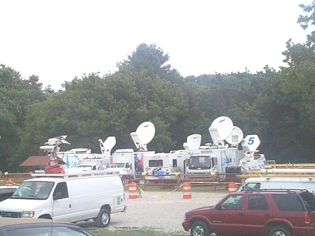 Media tents are busy Photos by John Griffin Pvt. Jessica Lynch comes home today to Wirt country where the people will care about her long after the furor fades away. A Wirt County resident said yesterday it might be nicer if this was just a local event, without all the media. "After all, that's what it's all about, bringing Jessi home." Dozens of satellite trucks and hundreds of media reps began to filter into Elizabeth these past two days. Some news anchors did their evening news from the front of the Wirt County Courthouse last night. Some are calling it the "Lynch Mob," referring to it as a media-government event. Today, thousands are expected to line the streets of Elizabeth and along Route 14 toward Palestine, the route to her home. The weather is iffy, but even showers and storms are not expected to keep the crowd away. Anyway, welcome home Jessi.